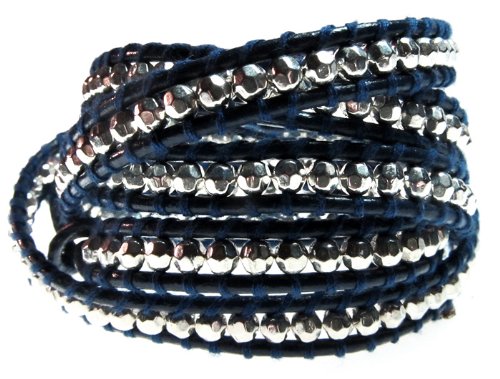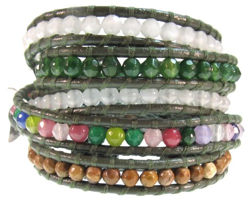 5 wrap bracelet with Multi Stone semi precious stones on brown colored leather. Sterling silver Chan Luu engraved button with 3 adjustable closures that measures 32" / 33" / 34" in length BS-1289WEBMULAvailable at Amazon Check Price Now!